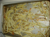 So on Sunday Steven and I watched "Big Daddy's kitchen" on the Food Network Channel. Well Big Daddy was showing how to make homemade chicken strips and fries... my two favorite things! So Steven and I thought it would be fun if we tried it! I love to make home made fries and usually make them a few times a month, but I realized that I had this grater that would be perfect for fries! So I got it out and tried it! Yup, it was perfect.. cut those potatoes into perfect fries! So that was exciting! Then Steven mainly did the chicken.. this is what we did.. we pounded out the chicken so it was skinnier.. cut it into strips.. dipped it in eggs, and then dipped it in Doritos.. yes.. Doritos! Buffalo Ranch to be exact.. so we just smashed all the chips in a bag and then covered the chicken in it! Then you just fry it and your done!! So this was our first go-around with completely home made stuff.. we tasted it and it was DELICIOUS! Might be our favorite dinner! So try it! But here are some pictures of last night's dinner!